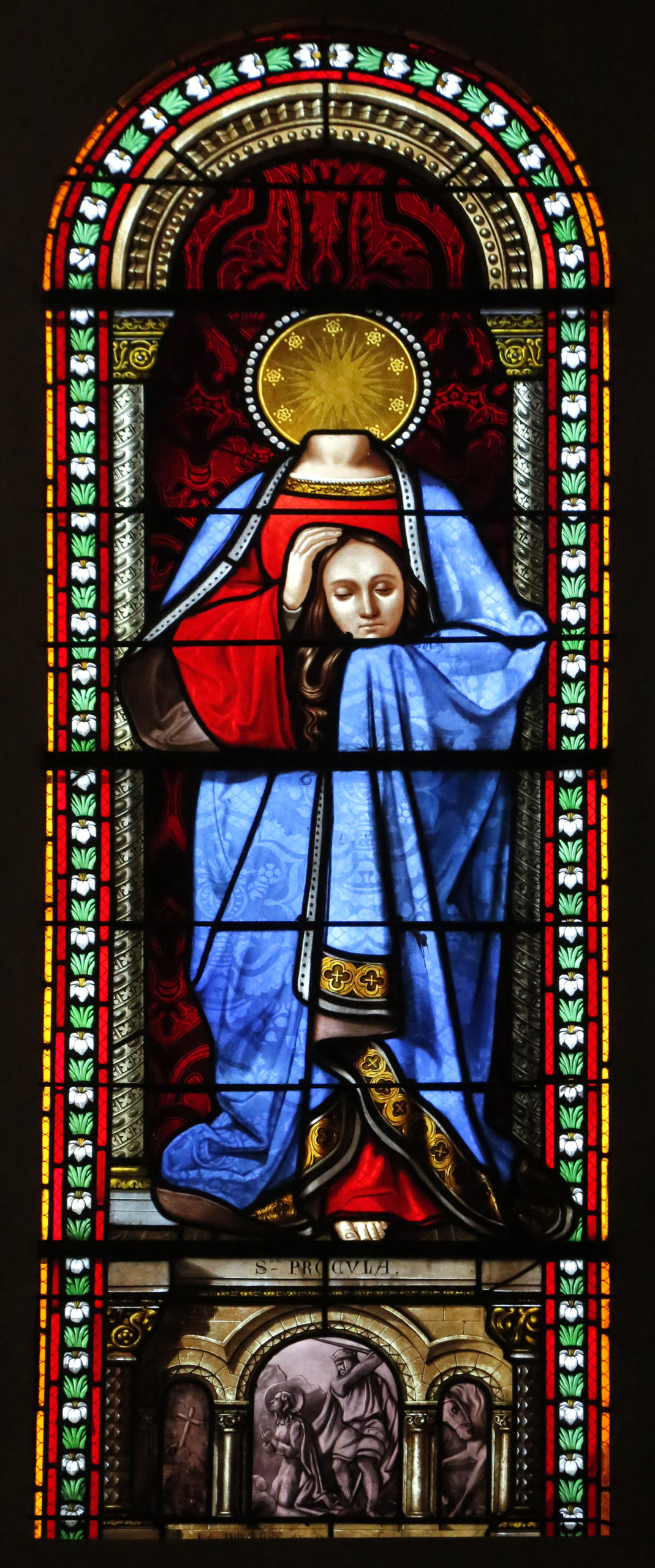 Mais l’histoire de la sainte ne s’arrête pas avec sa décollation. La légende ajoute que Procule se releva, prit sa tête entre ses mains et la porta, après cinq stations, sur les marches de l’autel de l’église Sainte Croix. Quelques années plus tard, les gannatois choisirent sainte Procule pour patronne et firent élever, à chacun des cinq endroits où la vierge avait fait ses stations, une chapelle dans laquelle était représentée la posture qu’elle devait avoir eue en s’y reposant. Le temps les a fait disparaître.